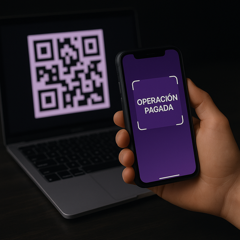Pagas por QR de tu banco de preferencia. El dinero queda en custodia mientras esperas el producto.